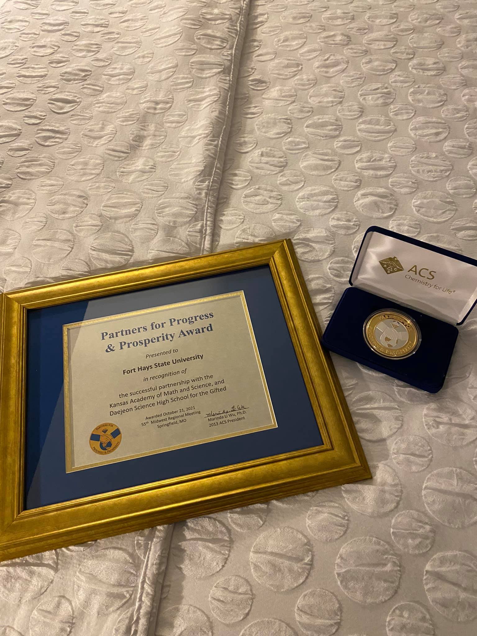The selection committee stated that this is an "outstanding collaboration between FHSU, KAMS, and the Daejeon Science High School for the Gifted and we thank you for all that you've done for both students and faculty in supporting STEM education & research."