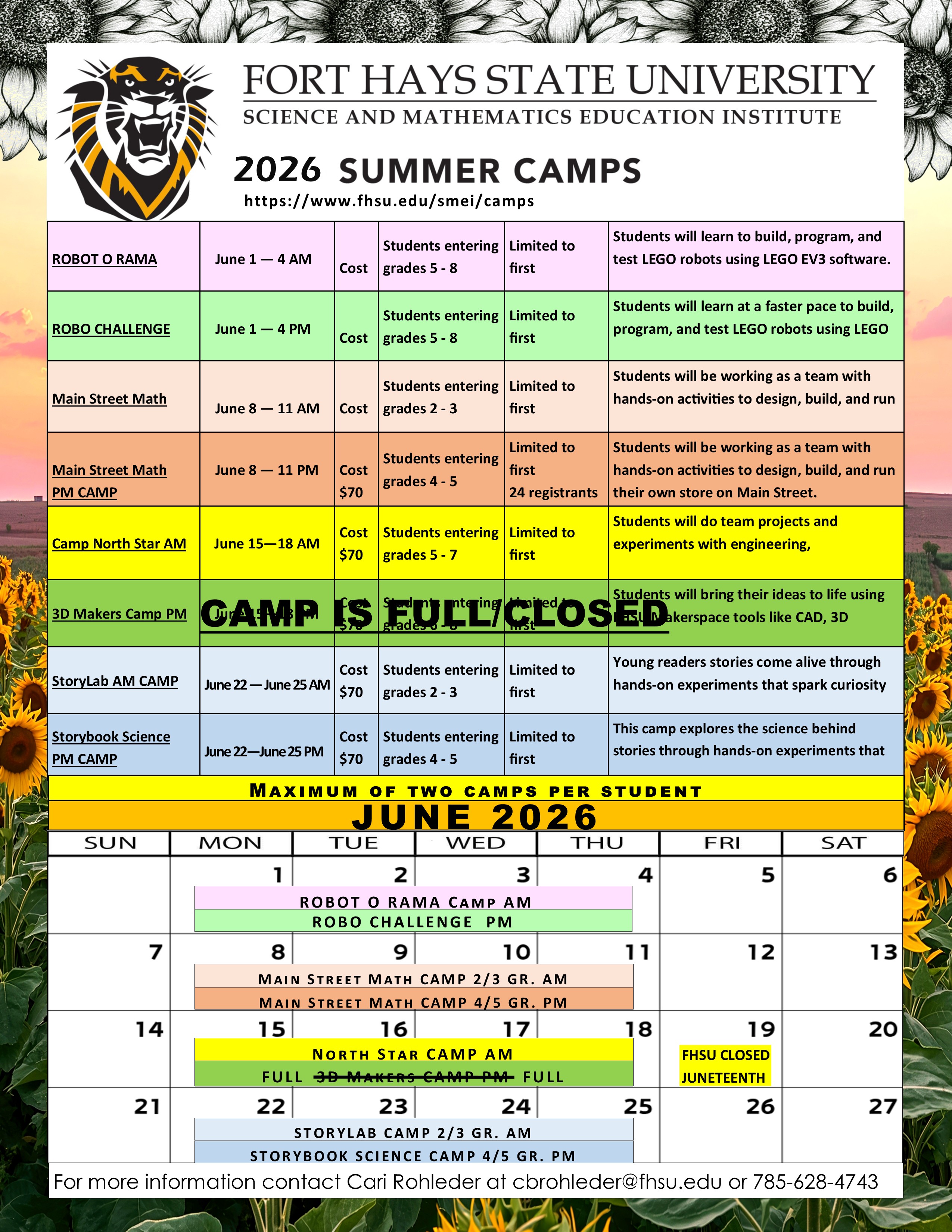 For more information contact Cari Rohleder at cbrohleder@fhsu.edu or 785-628-4743.