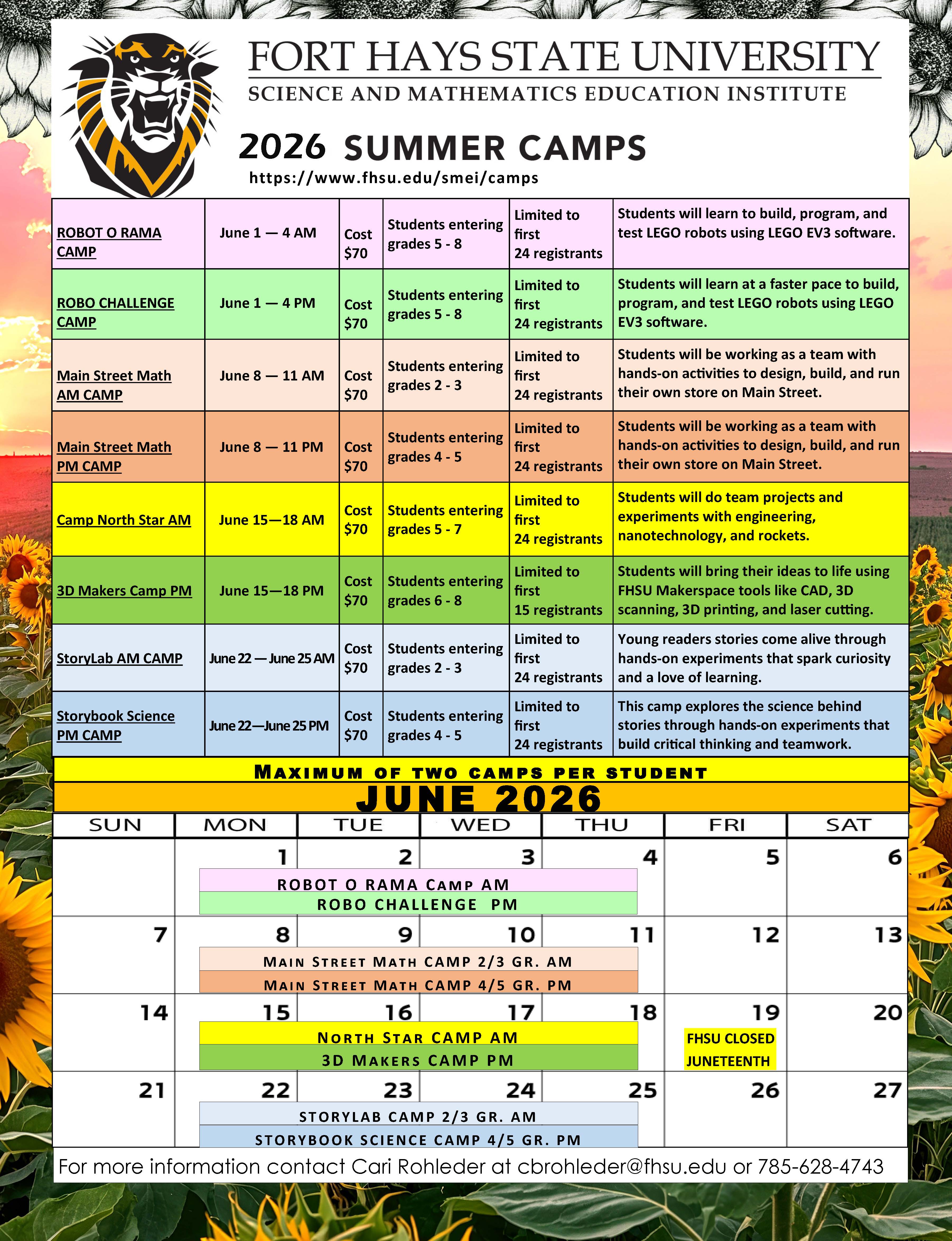 For more information contact Cari Rohleder at cbrohleder@fhsu.edu or 785-628-4743.