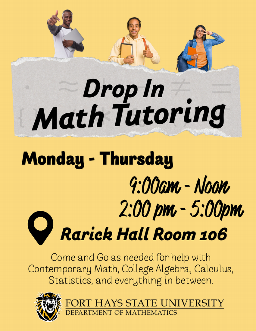 FHSU academic departments have additional tutoring opportunities. Contact the departments for more information.